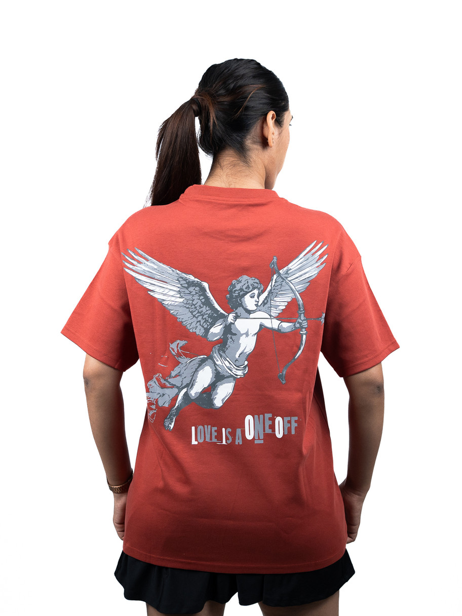 100% premium cotton oversized t-shirt with the softest feel inside and out, with a cupid graphic design on the backside.